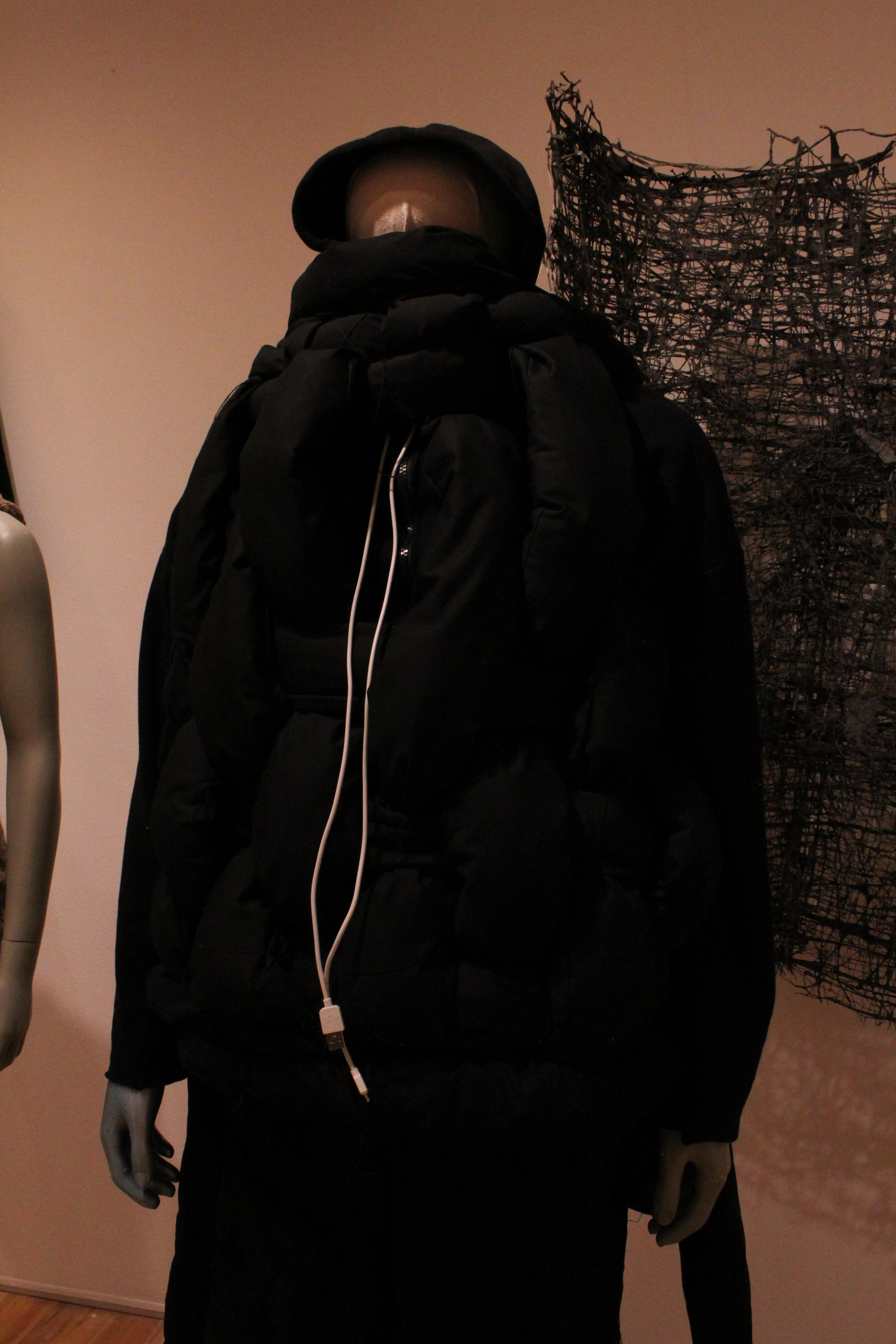 My senior thesis is centered around wearable technology, and how it can be interpreted from a textile and fabric lens, using materials for purposes and functions that they are not traditionally used for. Each piece is entirely patterned, sewn and finished by hand. Two full runway looks from my thesis are featured in this exhibition, and have notable visual similarities to the string grid behind them. Both are thematically inspired by technology, utility and textiles that can be found within everyday environments.
